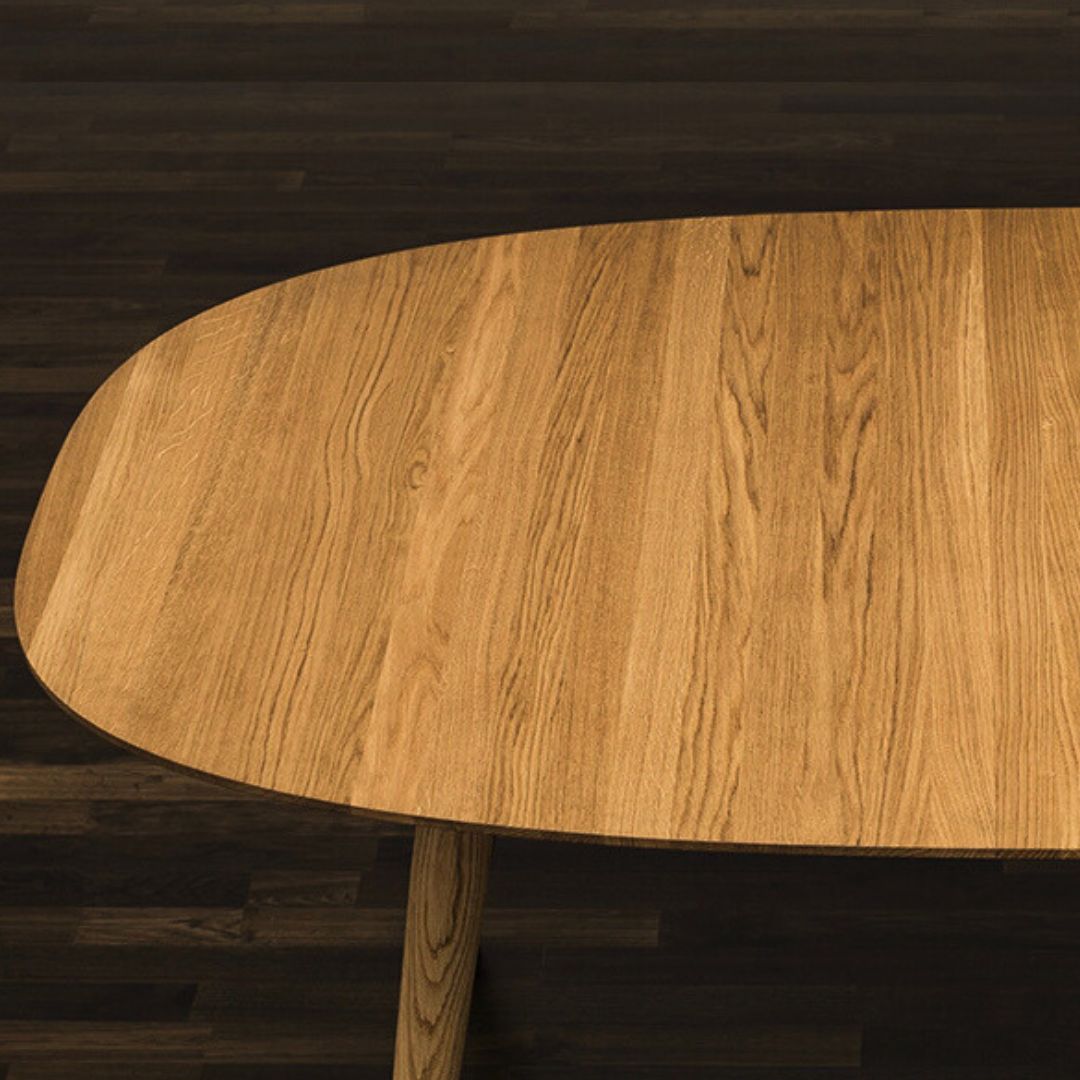 PLAYdinner Lamé inkluderer to tillægsplader, der let opbevares og indsættes fra opbevaringsrummet under bordet, hvilket muliggør en hurtig udvidelse fra 180 cm til op til 280 cm, med plads til 10-12 personer. Udsøgte samlinger gør udvidelserne næsten usynlige, en detalje der afspejler det nøje designarbejde. Det klassiske og tidløse udtryk i massivt træ gør bordet ideelt til mange forskellige stole.
