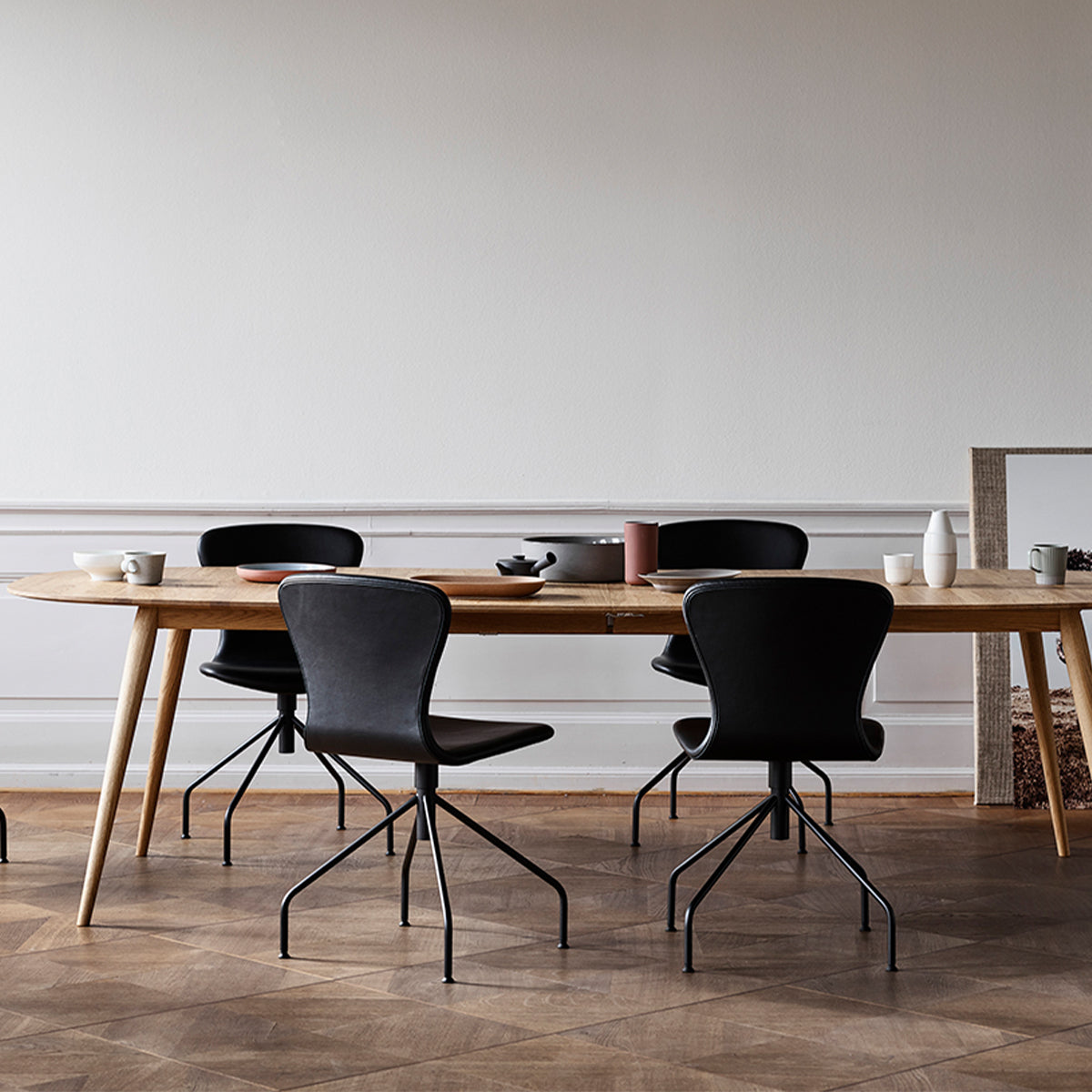 The stool is upholstered by skilled craftsmen who carefully select and hand-cut the leather used for the upholstery. The shell is made from 12 mm shape pressed FSC certified beech veneer, upholstered with 20 mm Oeko-Tex certified cold cured foam, providing excellent comfort while sitting. The stool is covered with Oeko-Tex certified protected leather, which has a smooth, polished surface with a subtle fine-printed texture. The leather is water-resistant, dirt-resistant, stain-resistant, durable and easy to maintain. The frame is made from 16 mm powder-coated steel.