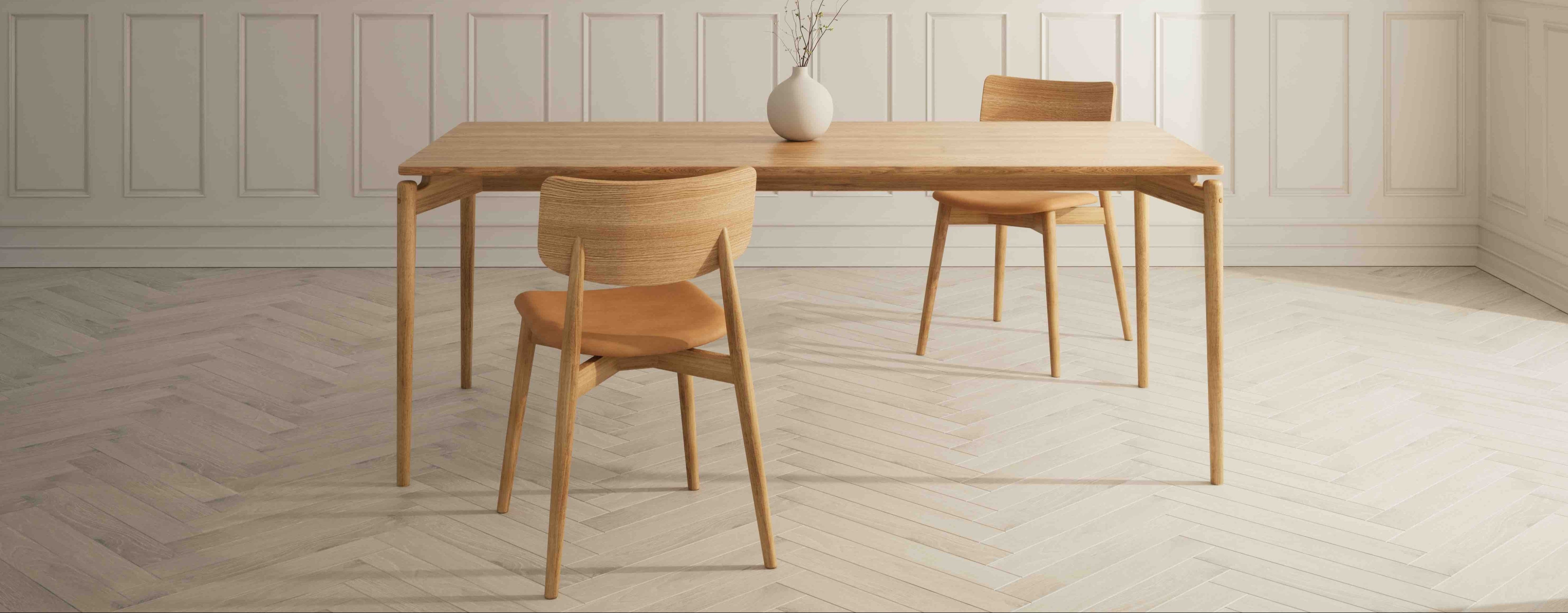 Each table is crafted in Denmark by some of the country's finest cabinetmakers, ensuring exceptional quality and attention to detail. PUREdinner is available in a range of beautiful solid woods: choose between oil-treated oak, white-oiled oak, smoked oak, or American walnut. Each wood type brings its own warmth, depth, and natural character to the home, developing a rich patina over time.