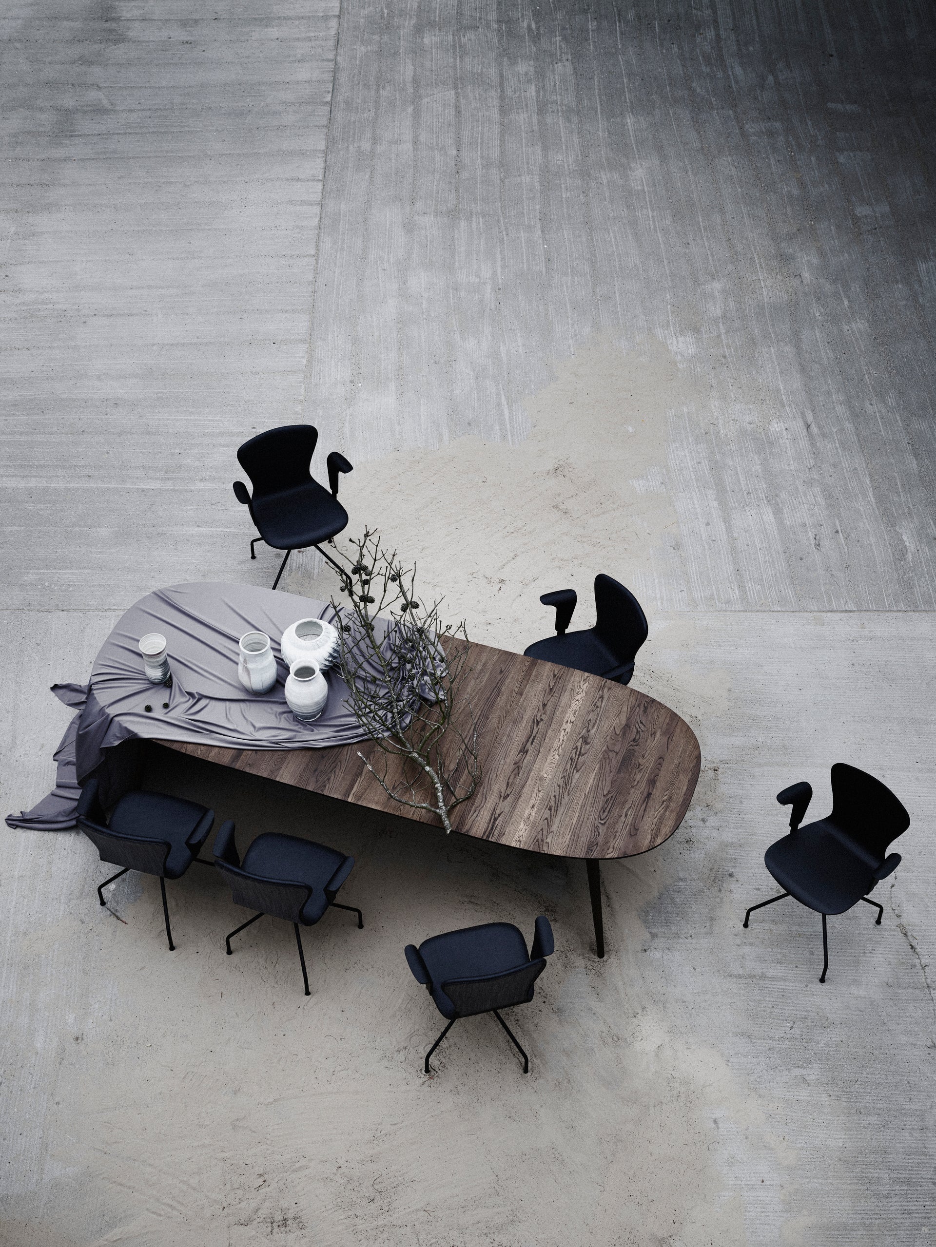 PLAYdinner Lamé is designed based on a geometric formula invented by the French Physicist and Mathematician Gabriel Lamé. The formula is used to calculate the ellipse-shaped curves that make up the shape of the tabletop, a shape also known as a superellipse. The special shape of the PLAYdinner Lamé, which lies between the shape of a rectangular and a round table, helps to create an incredibly cozy and social atmosphere and helps to gather everyone around it in the same way that is otherwise only possible with a round dining table. PLAYdinner Lamé is handmade in Denmark with continuous, solid wooden slats, the wooden slats are sorted so that the plates appear beautiful and harmonious with fine grain patterns.